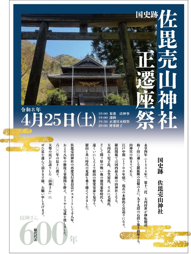 夜の帳が下りる中、銀山の歴史を繋いできた「山神さん」が再び鎮まる歴史的な瞬間を、共に見守っていただければ幸いです。