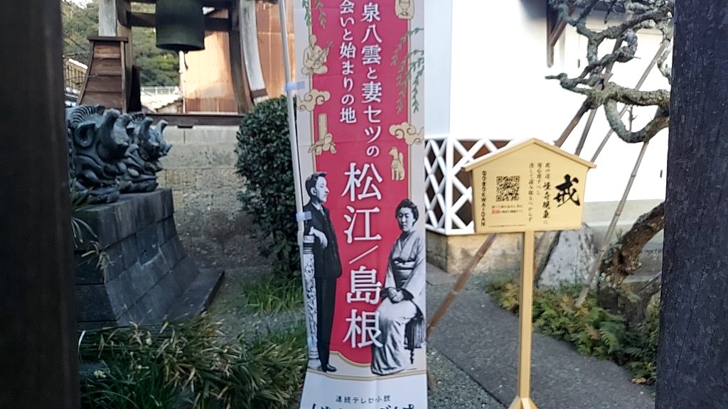 【温泉津 西楽寺(さいらくじ)にて 『なりきりKAIDAN』立札を設置中!】
