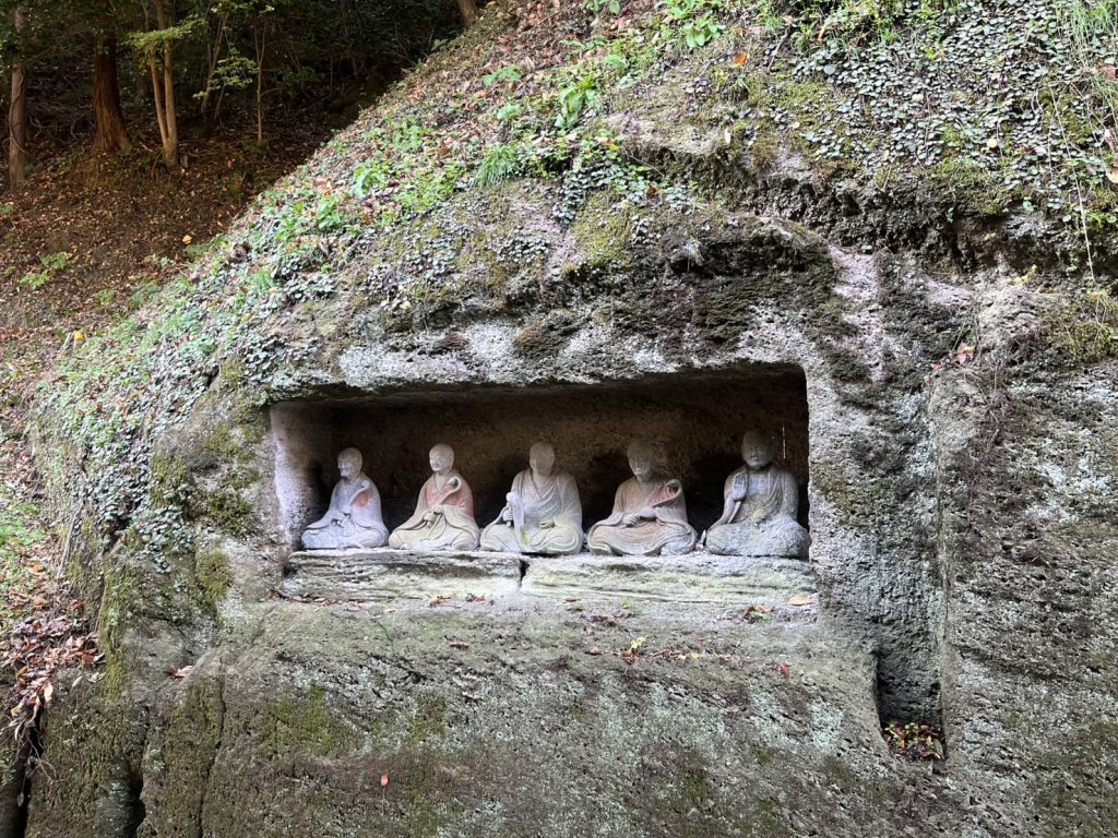 世界遺産石見銀山の大森地区にある五百羅漢は、石見銀山で銀を掘る故に短命だった鉱夫たちや地域の祖先の霊を供養するため、1766年に25年余年の歳月をかけて造られました。羅漢像は岩山を削って造られた左右の岩窟に、250体ずつ合計501体が安置されています。
